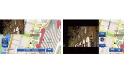 HSシリーズは映像と地図を2画面で表示することができ、映像の位置は2パターンからお好みで切り替え可能です。