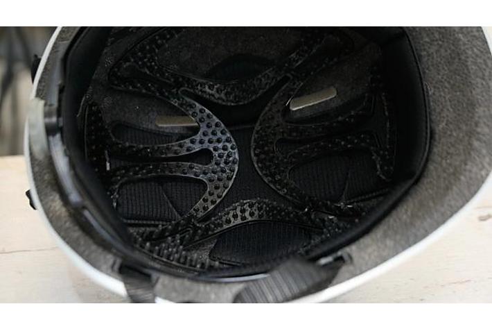 髪の毛とヘルメットの間に若干隙間を用意し、汗をかいてもヘルメットと直に接する面積を減らして圧着をできる限り減らし、通気性を高め蒸れを軽減することで髪型崩れをなるべる抑えるようにしました。
