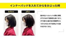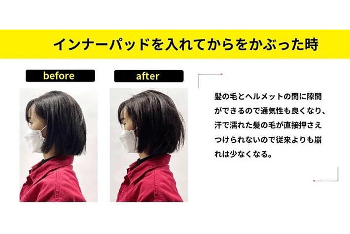 当製品では頭とヘルメットの間を少しだけ浮かせるような髪型保護用のインナーパッドを用意し、髪型崩れをできるだけ起こさないように工夫いたしました。