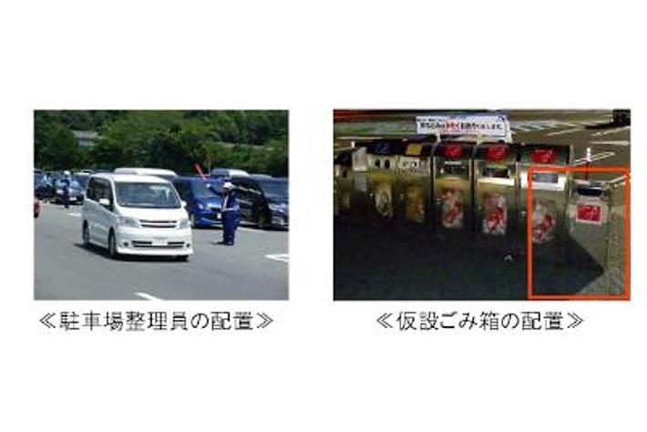 混雑を予測している期間に、休憩施設での 駐車場整理員の配置、 仮設ごみ箱の設置、 清掃員の増員などの対策