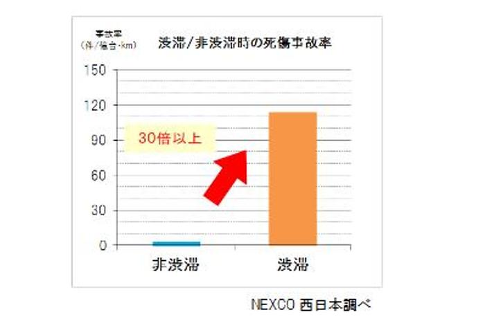◆渋滞発生時の死傷事故率は、非渋滞時の30倍以上!