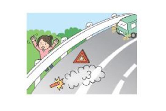 ◇停車後は、ハザードランプを点灯するとともに発炎筒や停止表示板で後続