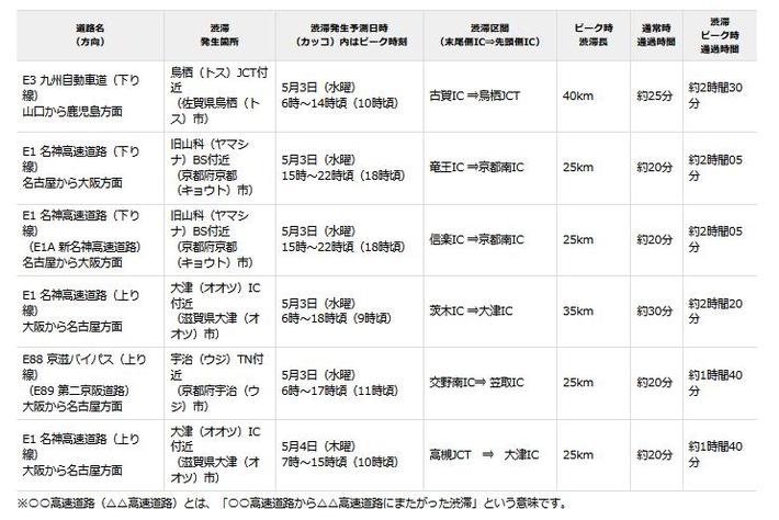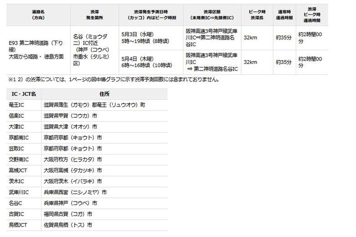 NEXCO西日本管内のゴールデンウィーク期間における高速道路の渋滞予測について