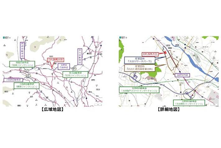 今回開発する「DPL群馬太田」は、東北自動車道「岩舟ジャンクション」と関越自動車道「高崎ジャンクション」を結ぶ北関東自動車道「太田桐生インターチェンジ」まで約3.2kmの場所に位置し、首都圏や関東地方向けの物流拠点として適した場所に位置しています。また、トラックドライバーの時間外労働の上限規制が適用される「2024年問題」にも対応可能な中継物流施設としての機能も備えています。