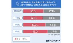 まずは、自分自身や、自分自身より若い世代などを見て「車離れ」を感じたことがあるか聞いてみました。