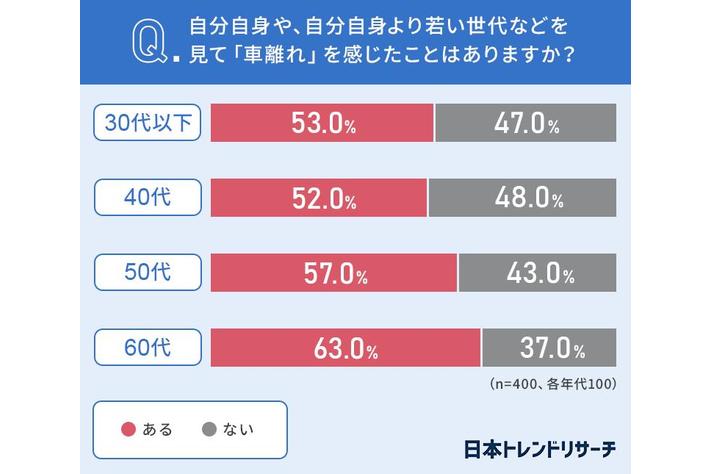 【車離れ感じますか?】60代の63%が、車離れを「感じたことがある」 年代別での差は?