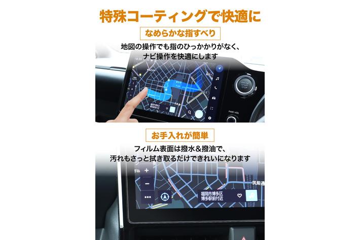 特殊コーティングにより、地図の操作でも指のひっかかりが少なく、ナビ操作を快適にします。