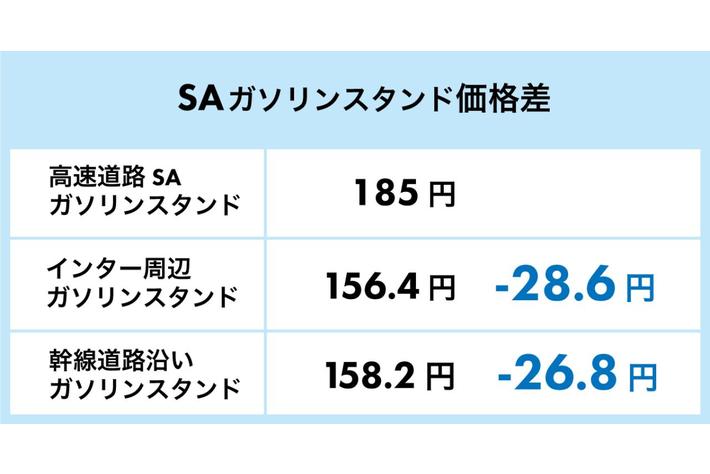 高速道路サービスエリアにあるガソリンスタンドの価格