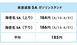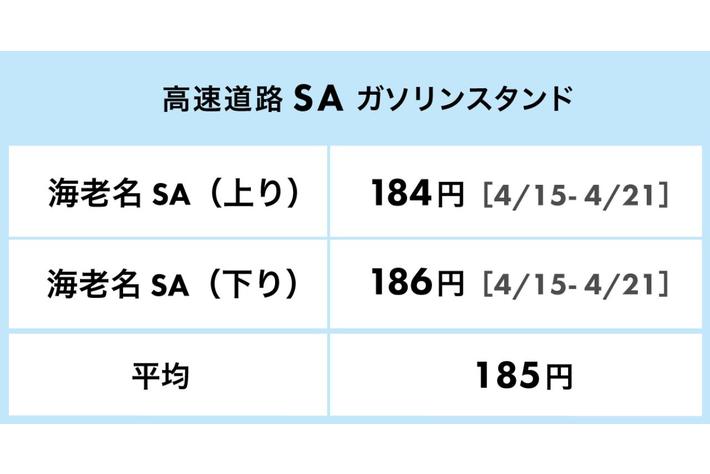 海老名SAにあるガソリンスタンドのレギュラー価格(2023年4月21日時点)となります。