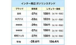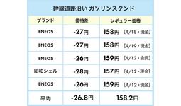 高速道路に乗る前後でガソリン価格差 28円 /L以上も!SA・インター周辺・幹線道路沿いのガソリン価格を徹底比較