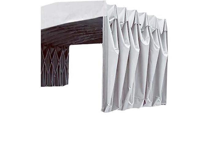■使い勝手がいい2方向のカーテン仕様設置環境に合わせて、両方向からの出入りが可能です。また全方向からの雨風を防ぐことも可能です。■ 堅牢なスチールフレーム1.5mmの肉厚スチールフレームを採用しているので、使用時のぐらつきが少なく、さらにはロック付きキャスターで移動や固定がスムーズに行えます。