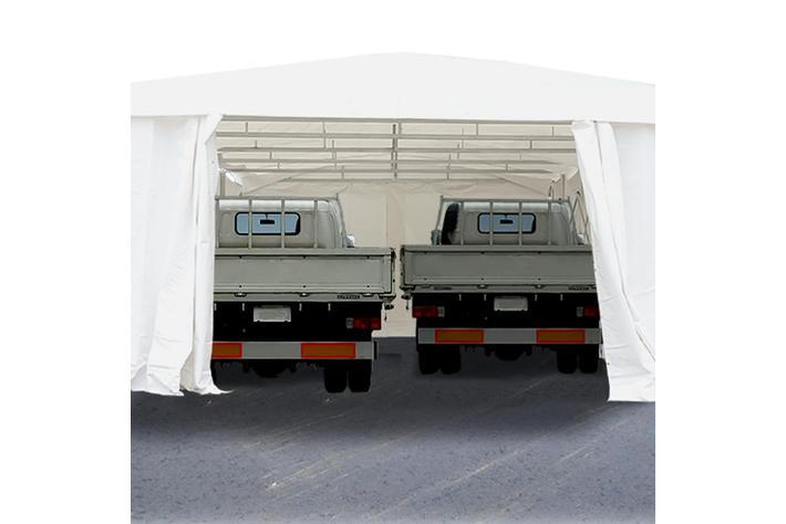 伸縮式で移動が容易なテント倉庫『DOMEDEPOT』があれば、建築物を建てるのが困難で諦めていた方でも、気軽に導入していただけます。在庫の一時保管場所や雨や直射日光を除けた作業スペース、トラックやリフトなどの保管場所など、マルチシーンで活躍します。