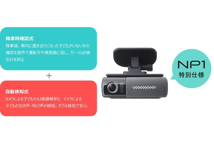 ※1 ドライビングパーソナル音声AIを搭載したコネクテッドデバイスとして、ESP総研調べ (2022年3~4月実施のカーエレクトロニクス製品に関する市場調査)※2 通常の「NP1」とは購入・設置方法やサービス内容などが異なります。詳細は商品特設ページでご確認ください。※本装置はあくまでヒューマンエラーによる置き去りを防止する上での補助的な役割を果たすものであり、完全に置き去りを防止するものではありません。条件によっては検知できないことがあります。※本装置は通信機能を搭載しており、2年目以降は更新利用料のお支払いが必要です。(15,840円(税込)/年、購入後1年間の利用料は本体価格に含まれています)※通信契約を更新されない場合も、引き続き「降車時確認式」機能はご利用いただけます。