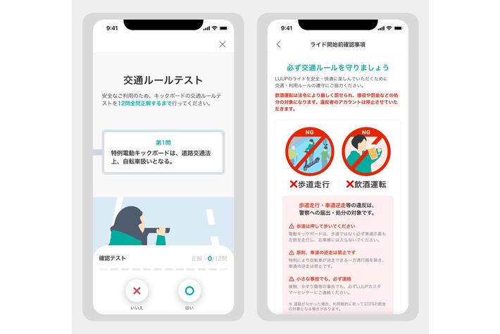 Luup代表の岡井氏は電動キックボード事業者業界団体「マイクロモビリティ推進協議会」の会長を務め、関係省庁と連携しています。また、電動マイクロモビリティの安全な普及のために、サービス内で運転免許登録と関係省庁監修の交通ルールテスト全問正解を義務付けており、違反行為に対する厳正な対処や車両のメンテナンス、安全講習会の実施など様々な安全対策に関する取り組みも行っております。