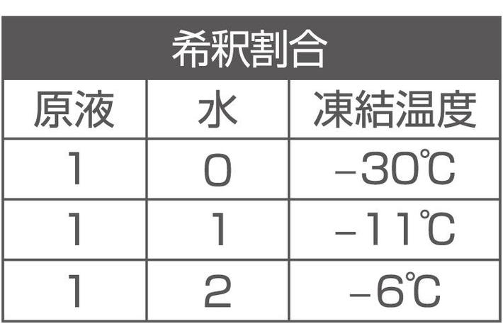 薄めずそのまま使用できますが、表を参考に希釈しても使用可能です。