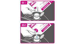 2)注ぎ口の●印を指で押さえながら、キャップを回し開けてください。