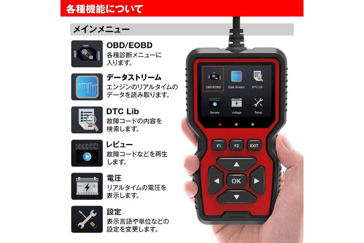 約36000件のエラーコード情報が内蔵された高性能ODB2車両診断ツールです。