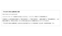 この保険はトライアンフのオフィシャル保険サービスとして、全国の正規販売店および専用ウェブサイト上で取り扱われます。