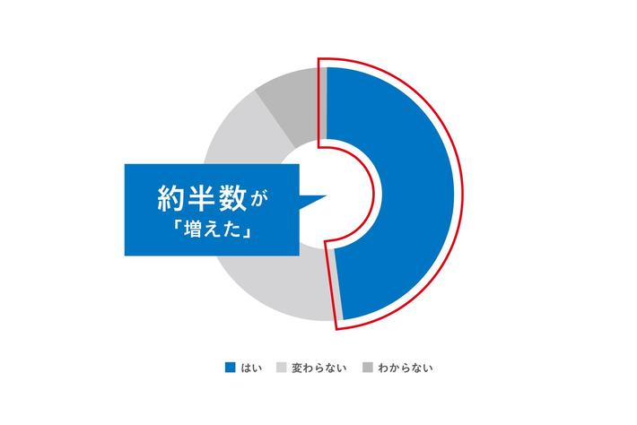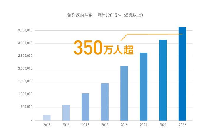 超高齢化社会を背景に、免許返納件数は累計で350万件規模(注1)に広がっている一方、シニアの3人に1人が「車の代わりになる移動手段が少ないと感じる」と回答(注2)しています。地域のお客様の移動を支えることを使命とするディーラーにも本人やご家族から免許返納やその後の生活の足に関する相談が多く寄せられ(75%超)、うち半数近くが過去1年でそうした相談が「増えた」と答えています(注3)。