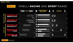 第 4 世代の DIABLO(TM)タイヤは、ベースとなる DIABLO ROSSO(TM) IV、よりハイグリップな DIABLO ROSSO(TM) IV CORSA、レーストラックでの性能をロードでも発揮する最高級の DIABLO(TM) SUPERCORSA V4 SP と、ライダーに異なる選択肢を提供するハイパースポーツ・タイヤになっています。