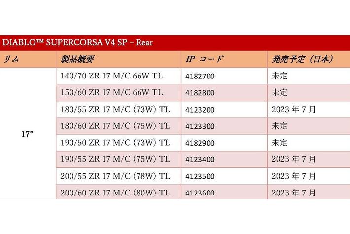ピレリジャパンはDIABLOl(TM) SUPERCORSA SP V4(ディアブロスーパーコルサエスピーブイフォー)を発売します。発売は*7月1日より順次予定しており、6月1日より受注を開始いたします。価格はオープンプライスです。