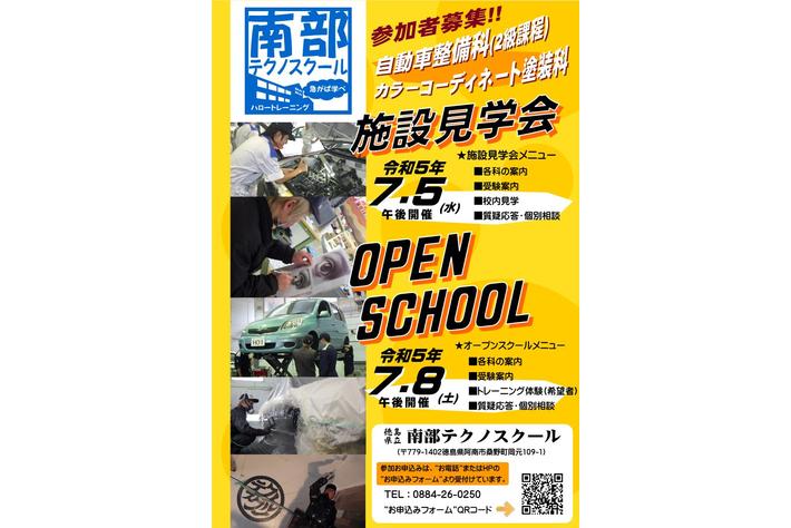 公共職業訓練校「徳島県立南部テクノスクール」は、以下の日程で令和5年度の施設見学会及びオープンスクールを開催します。