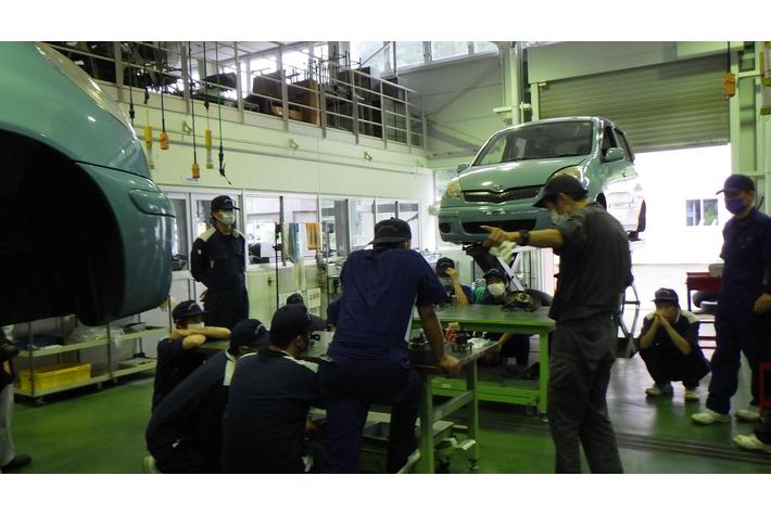 トレーニングは自動車整備の基礎からはじまり、車検整備、部品交換作業、故障診断やEV車、ハイブリッド車などの最新技術まで、実習主体のカリキュラムでわかりやすく学習します。