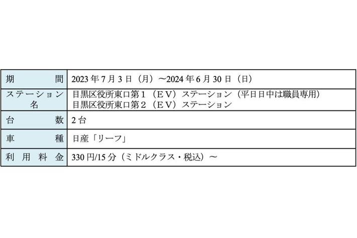 タイムズモビリティ株式会社(本社:東京都品川区、社長:川上紀文)は、7月3日(月)より目黒区役所総合庁舎駐車場にカーシェアリングサービス「タイムズカー」のEV2台を配備し、目黒区庁用車の脱炭素化および区民等へのEV普及促進に貢献します。