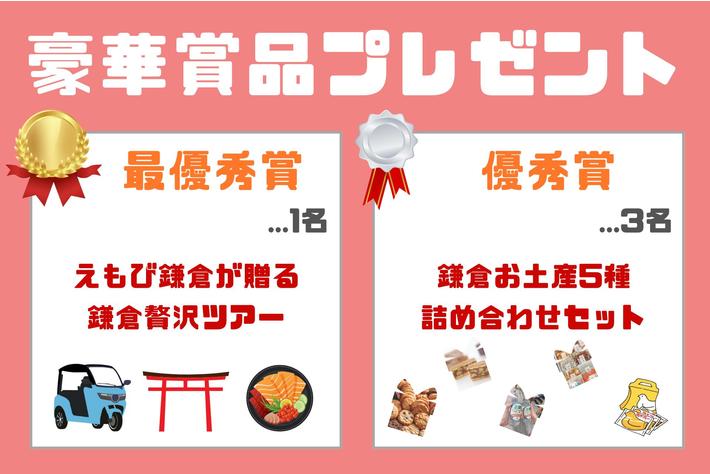 概要 :キャンペーン期間中、えもび鎌倉で電動トゥクトゥクをレンタル頂いた方を対象に、紫陽花の写真をTwitterやInstagramでハッシュタグ「#えもび鎌倉で紫陽花巡り」をつけて投稿し、フォトコンテストに応募することで、2000円をキャッシュバックいたします。最も優れた写真を撮られた方には、最優秀賞としてえもび鎌倉スタッフが厳選したおすすめスポットの周遊ツアーをプレゼントいたします。ツアー中の食事や駐車場、散策にかかる費用は一切かからず全て株式会社eMoBiが負担します。優秀賞には、鎌倉名産のお土産詰め合わせセットをプレゼントします。
