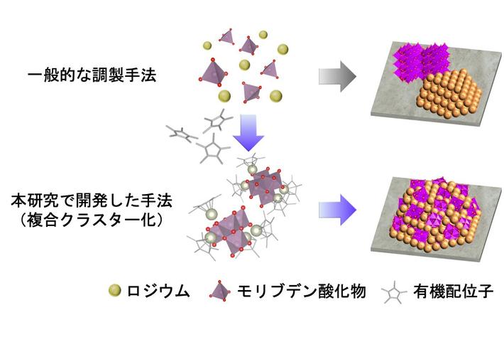 図2. 複合クラスター化を利用した担持ロジウム-モリブデン触媒の調製手法