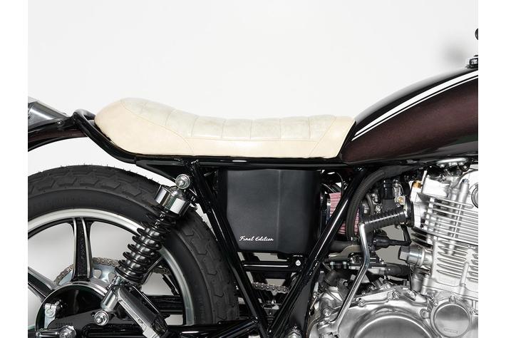 このカスタム車両は、デウスジャパンのビルダー添田智行氏により丁寧に手がけられ、 美しいデザインとディープエスプレッソブラウンのカラーに目を惹かれることでしょう。 各バイクには独自のシリアルナンバーが入り、この特別に制作されたバイクは、その美しさとパフォーマ ンス、そして軽量化させたことで、バイク女子にもおすすめできる一台です。ビルダー添田氏の熟練した クラフトマンシップが光るカスタム SR400 は、スタイリッシュなデザインと優れた走行性能を兼ね備えています。