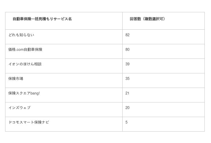 4.知っている、聞いたことのある「自動車保険一括見積もりサービス」を “すべて” 選んでください。(複数選択可)