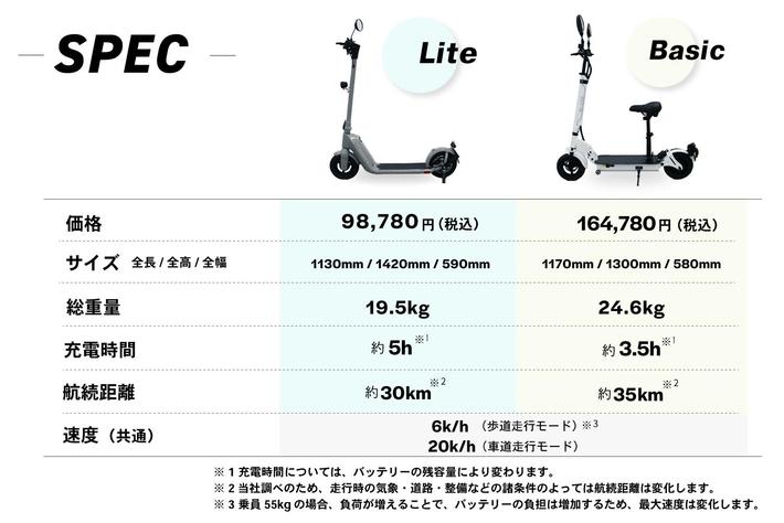 ブレイズは、特定小型原付カテゴリにおいても、幅広い層のお客様の多様な用途に合わせてお選びいただけるよう、「KICKBOARD EV(キックボードEV)Lite(ライト)モデル」、および同「KICKBOARD EV Basic(ベーシック)モデル」の2つのモデルをご用意いたしました。