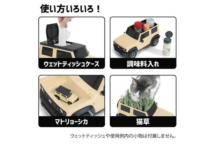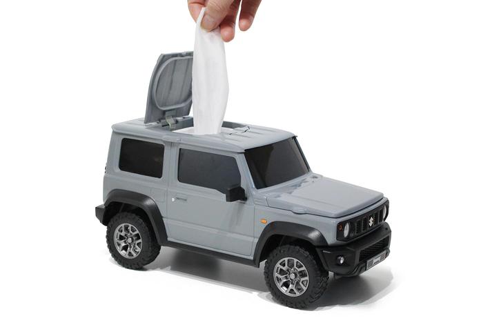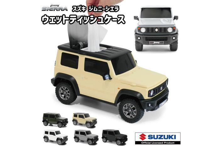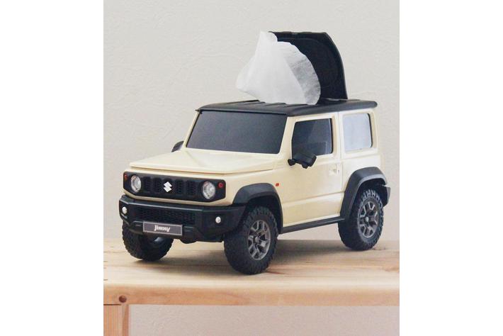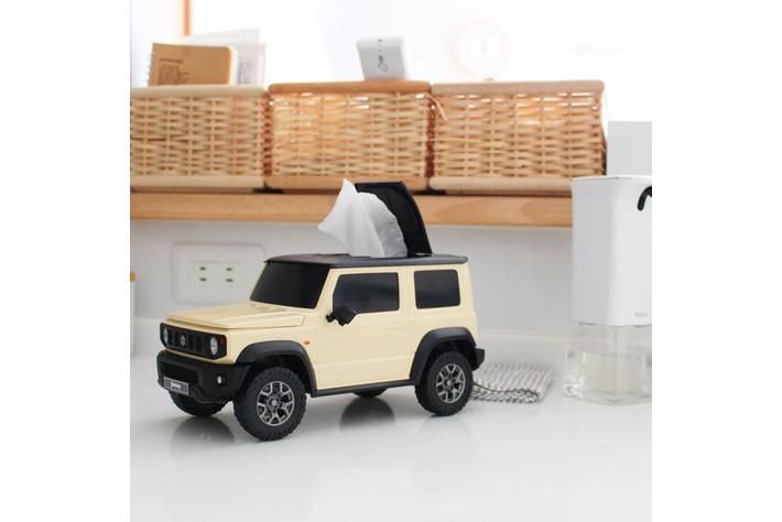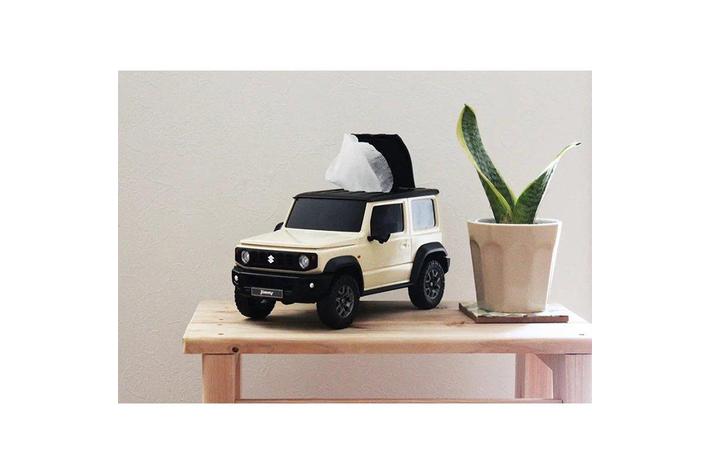 ミニカーの見た目をした「ジムニー シエラ型 ウェットティッシュケース」が小田急百貨店新宿店(7階)に登場しました。1/12というスケールでジムニーを細部まで再現したウェットティッシュケースは、使う時だけルーフ部分のボタンを押すことでフタが開き、セットしたウェットティッシュケースを取り出すことができる遊び心たっぷりの仕様。ボンネットが開いたり、ルーフの取り外しが可能なため小物入れやミニラックとしても使うことができるほか、インテリアとしてもお楽しみいただけます。