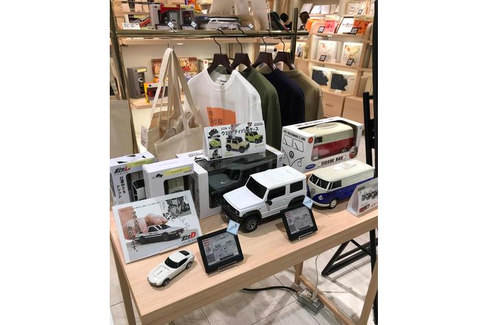 店頭ではウェットティッシュケース以外にも、ジムニーのTシャツ、トートバッグなどもあわせて展開しています。父の日のギフトとしてもお求めいただくことの多いグッズです。