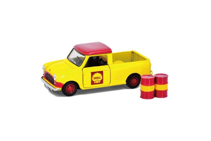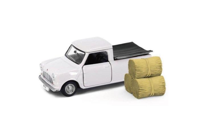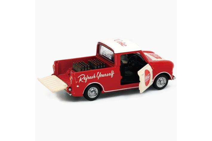 クラシックなミニの中でもひときわ目を引く小さなピックアップトラックは、荷台に載せられる小さな荷物のフィギュアつき。