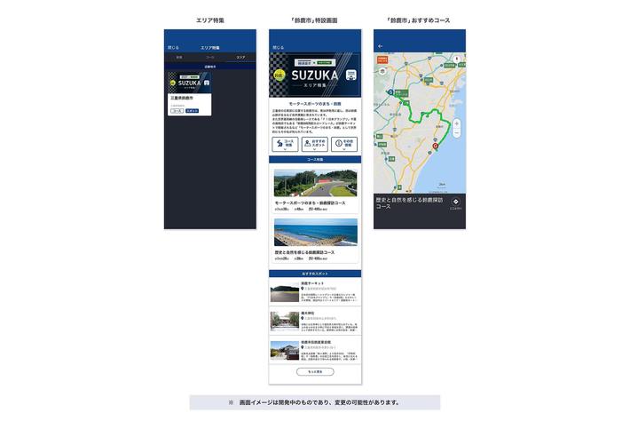 ・「エリア特集ページ」のコンテンツとして、鈴鹿市の「おすすめコース」や「おすすめスポット」を掲載。