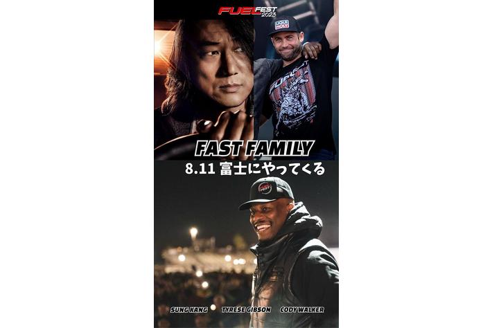 世界最大級のカー・フェス「FUELFEST JAPAN」が8月11日(山の日)に今年も開催決定!! 映画ワイルドスピードで有名なハリウッド・スター 「サン・カン」(役名:ハン)「タイリース・ギブソン」(役名:ローマン)と故ポール・ウォーカーの弟「Cody Walker」に会えるのは「FUELFEST」だけ! 今年も静岡県「富士スピード・ウェイ」で開催。