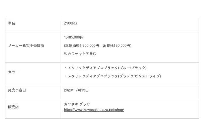 株式会社カワサキモータースジャパン(本社:兵庫県明石市、代表取締役社長:桐野 英子)は、NEWグラフィックのZ900RS を7月15日(土)に発売します。また、Z900RS CAFE、Z900RS SEはカラーを継続し同日7月15日(土)より販売します。
