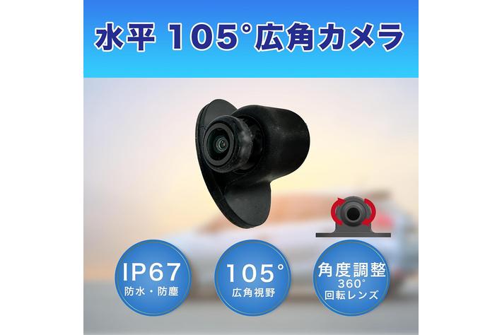 ◆サイドカメラは車外でも問題ない防水防滴IP67仕様で、角度調整可能な360°回転レンズを採用!
