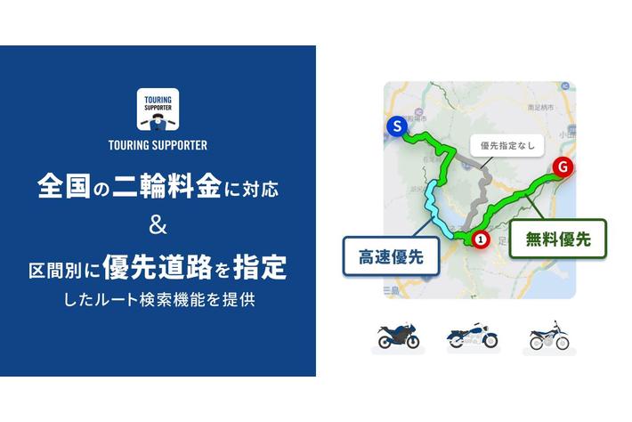 株式会社ナビタイムジャパン(代表取締役社長:大西 啓介、本社:東京都港区)は、2023年7月5日(水)より、バイク専用ナビゲーションアプリ『ツーリングサポーター by NAVITIME』にて、全国の一般有料道路の二輪車料金情報に対応し、あわせて、区間別に優先道路を指定するルート検索機能を提供します。