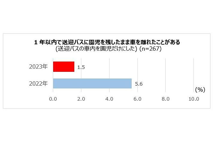 ・「1年以内に子どもだけを残して送迎バスを離れた経験がある」との回答は1.5%まで減少。