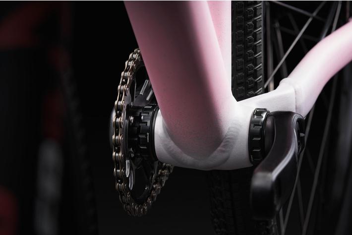 新設計のドロップアウトは細かなニーズに応えるべく、ディレイラーとシングルスピードの両方に対応。また、リアセンターを15mm調節でき、チェーンに適切なテンションをかけ、ホイールベースを伸ばして安定性を高められます。さらに、アクスルがずれたり軋んだりすることもありません。テーパー形状のヘッドチューブはフレーム全体の剛性を高め、ねじ切りボトムブラケットが整備性を向上させます。