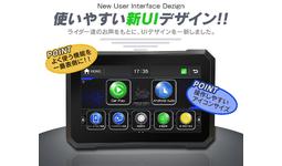 本体起動時のUIデザインも、ライダー達の意見をもとにデザインを一新! 本体を使用する際によく使う機能を一番表側に配置し、使いやすい弊社独自のUIデザインに変更。 また、手袋をはめたままでも押しやすいボタンサイズに調整しましたので、画面も見やすく誤タッチなく使用できるデザインとなっています。