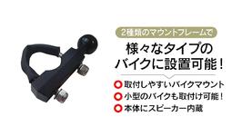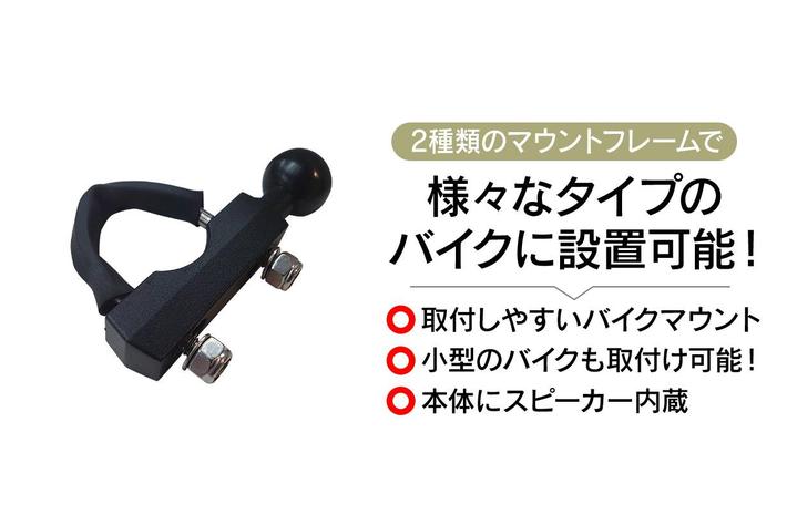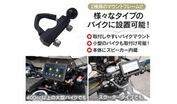 7インチのポータブルタイプなので、排気量の大きなバイクからスクータータイプのバイクなど、様々なタイプのバイクに手軽に取り付けることが可能です。2種類のマウントフレームが付いているのでバイクに合ったマウントを使用してください。
