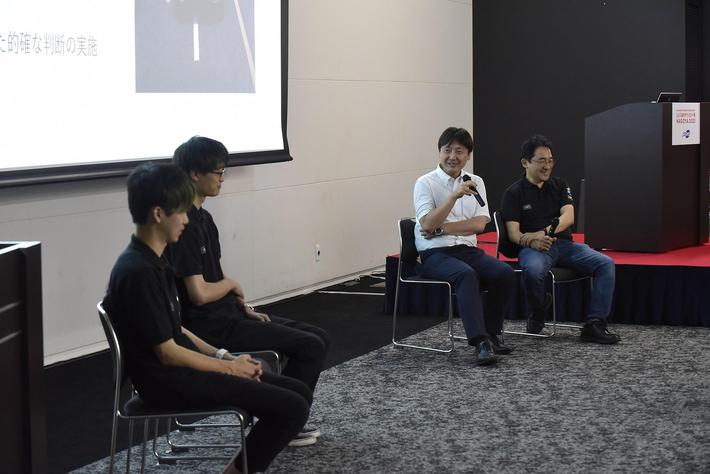 「自動車技術会が目指すソフトウェア人材の育成の方向性と展望」と題して、名古屋大学 未来社会創造機構 モビリティ社会研究所 教授 河口 信夫 氏の講演の後に、同氏のモデレーターの元、自動運転AIチャレンジ出場関係者によるパネルディスカッションを実施しました。