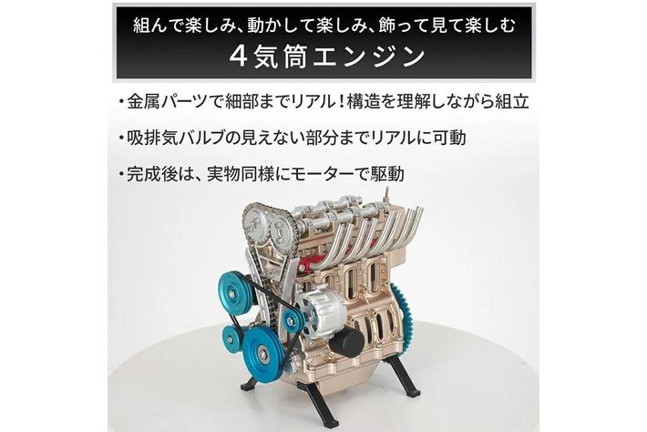 エンジンを組立よう 完成後はモーターでリアルに動く!DOHC4気筒エンジン模型