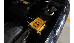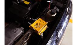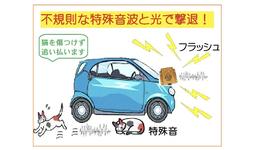 「キャットセイバーIII」は、エンジンルームなどに装着した本体から発生する音波や光によって、ネコがクルマの付近に滞在することを防ぐアイテムです。