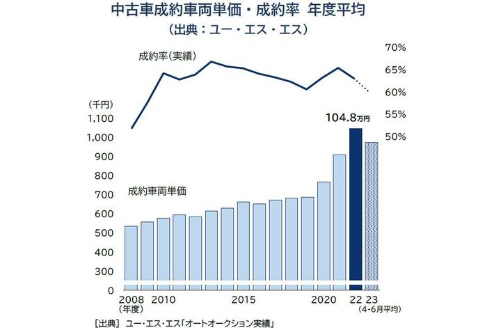 中古車販売市場は東日本大震災の被災地を中心に需要が拡大した2011年度以降、19年度まで9年連続で拡大が続いた。コロナ禍の影響を大きく受けた20年度は一旦減少したものの、21年度以降は新車販売で人気モデルやグレードで半導体不足などの影響を受けた供給量減、納車遅れ等が多発した。また、完成車メーカーによる新車価格の値上げも相次いだことで、車検切れなどで発生したユーザーの買い替え需要を中心に、割安で即時納車が可能な中古車の人気が高まった。