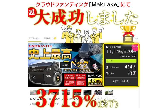クラウドファンディング『Makuake』にて大成功を収めたMAXWINの新商品